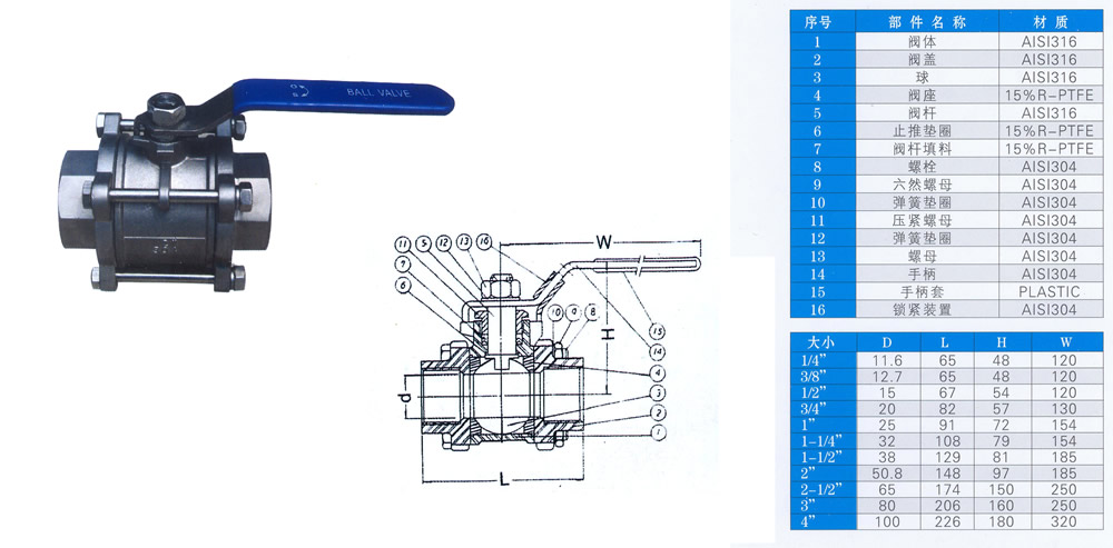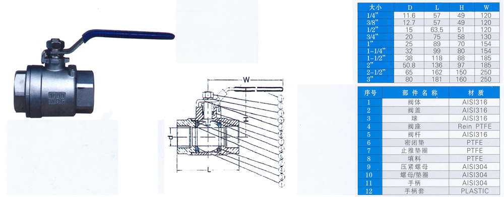三片式内螺纹 承插焊和对焊式不锈钢球阀