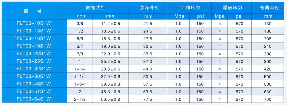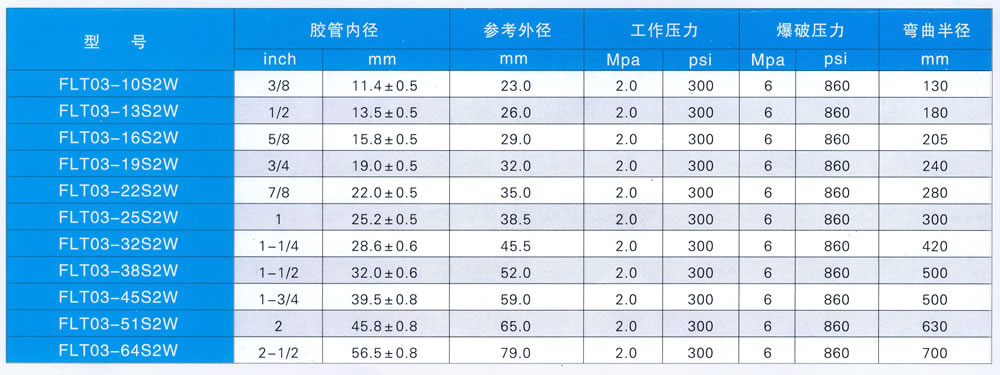 结构:胶管采用耐热性能良好的特种橡胶制造,镀铜钢丝编织增强层。