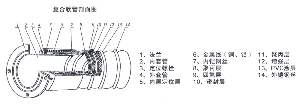 复合软管对含芳香烃的化学制品以及酸碱等液体介质,都具有良好的耐腐蚀性能。在金属软管和橡胶管不能适用时,采用复合软管是最理想的选择。
